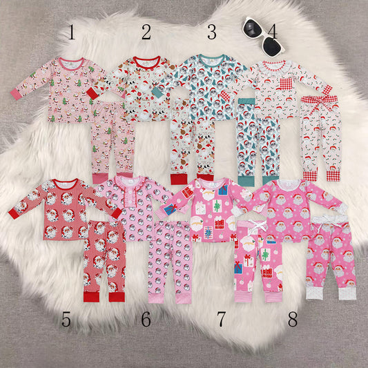 Mama and Me Pink Bows Santa Trees Button Top Pants Christmas Fur Pajamas Sets