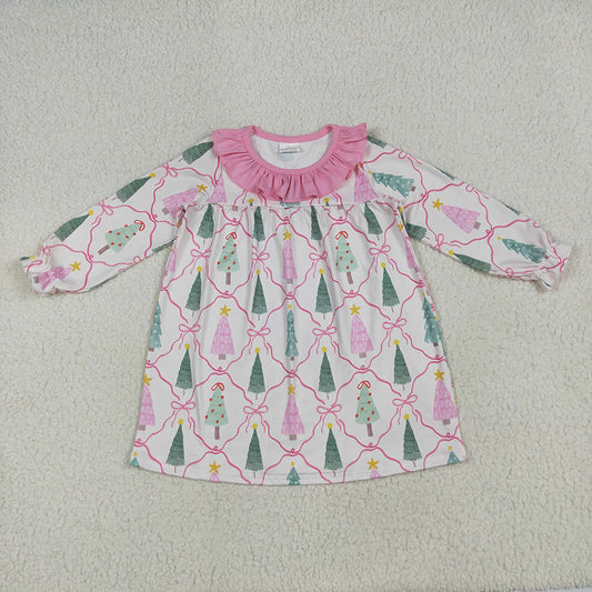 Sibling Baby Girls Smocked Christmas Trees Dresses Ruffle Sleeve Footie Rompers