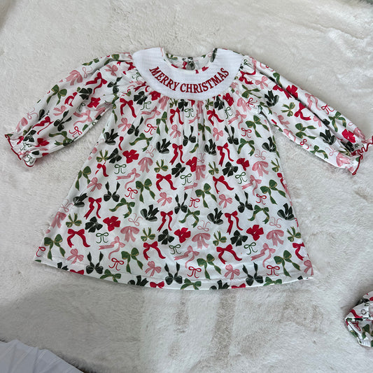 Baby Girls Long Ruffle Sleeves Red Bows Candy Cane Plaid Tunic Legging Pant Set Preorder