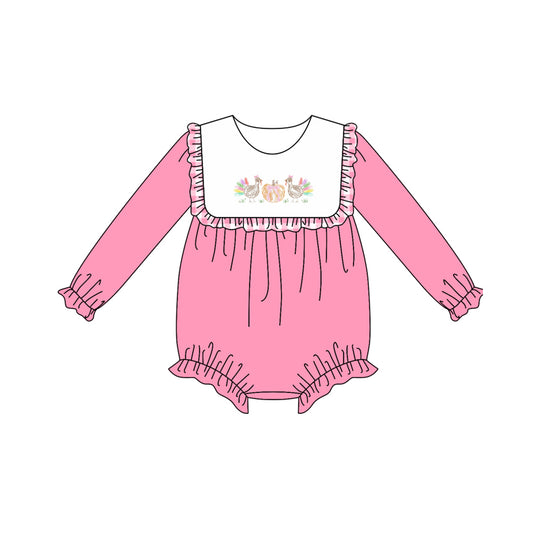 Baby Girls Smocked Thankful Colorful Bows Ruffle Rompers Preorder