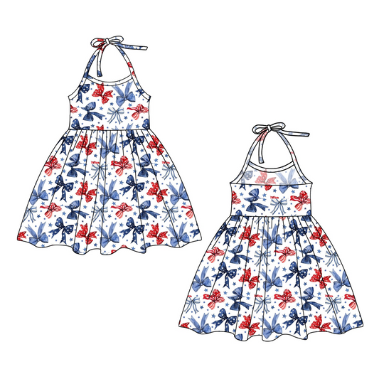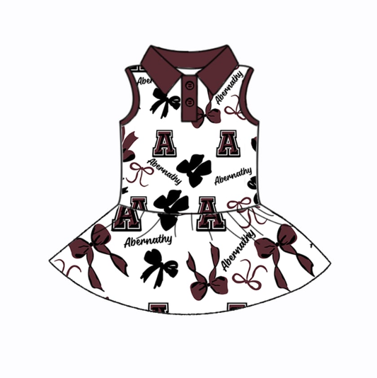Split Preorder July 21th Baby Girls Team Sleeveless Bows Plaid BC Button Knee Length Dresses