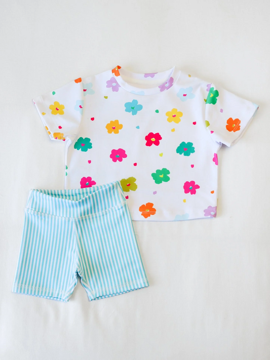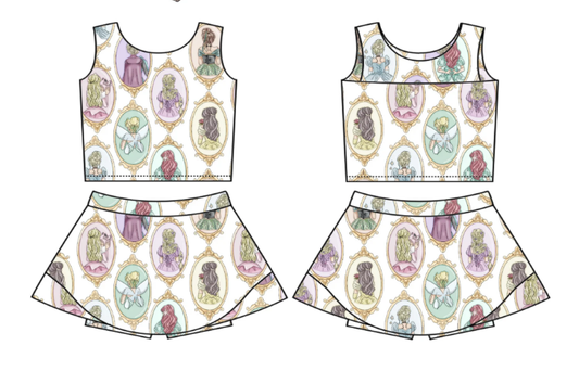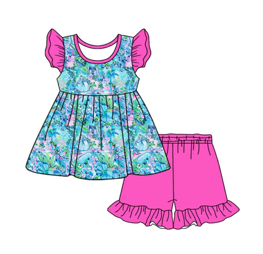 Split Preorder July 24th Baby Girls Blue Flutter Sleeves GR Top Ruffle Skorts Team Set