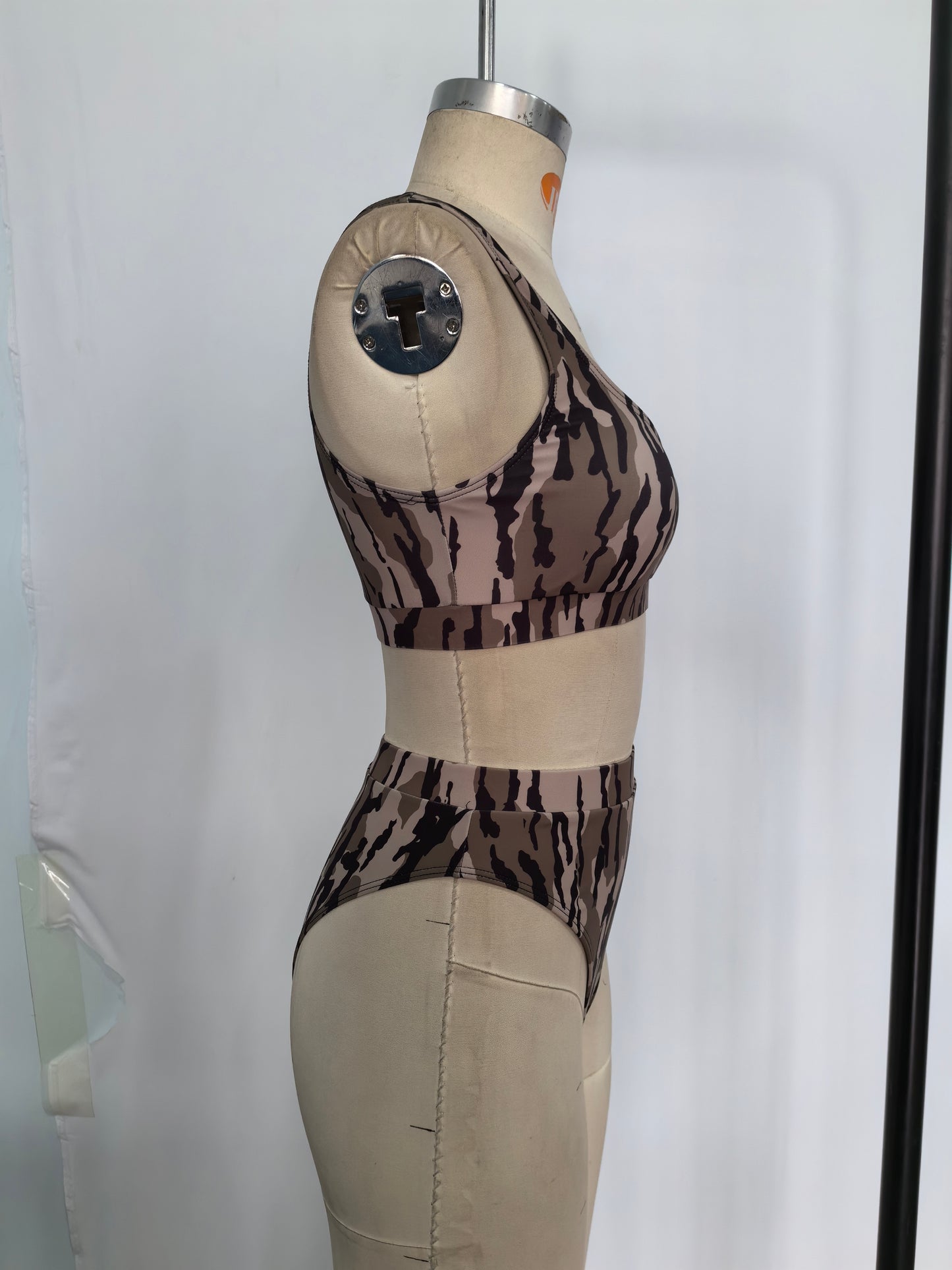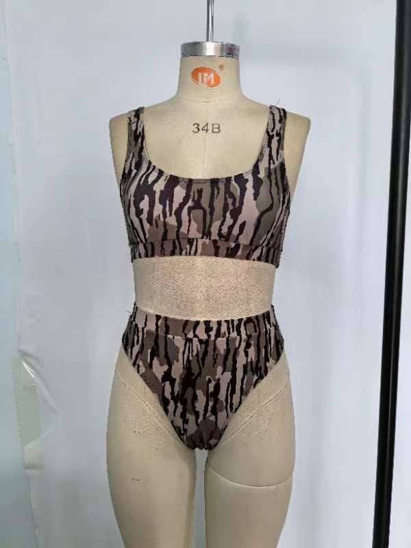 Adult Women Green Camo Top Bottom Swimsuits Sets