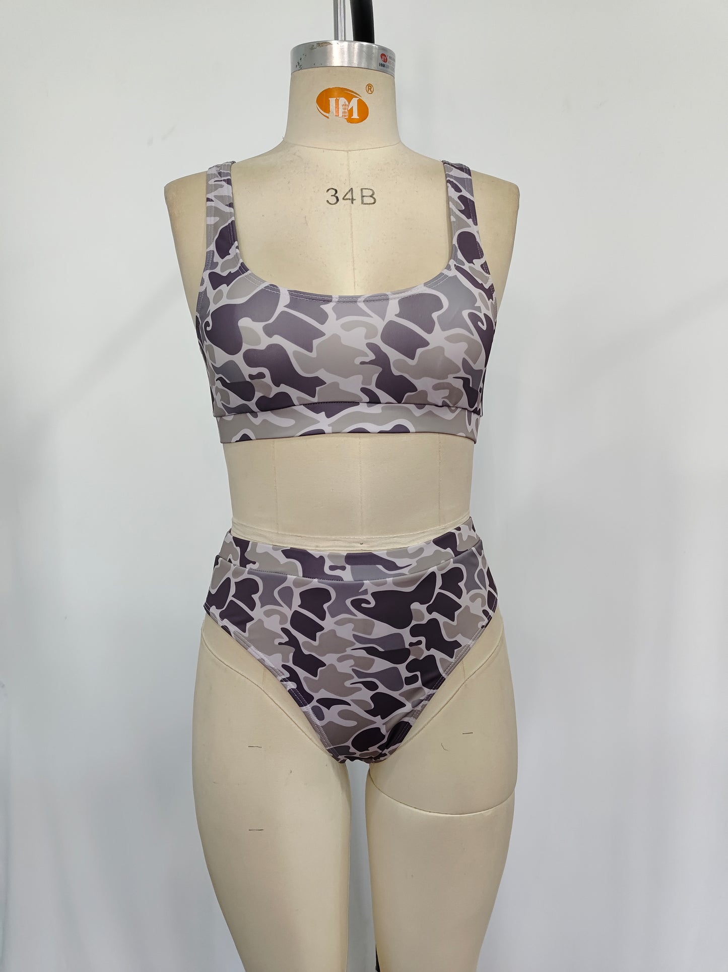 Adult Women Grey Camo Top Bottom Swimsuits Sets