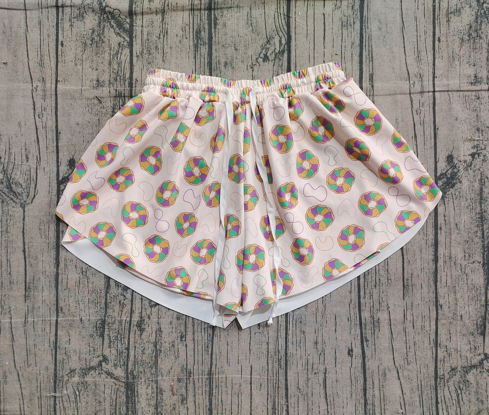 Adult Women Mardigras Donuts Necklaces Yoga Active Ruffle Shorts Bottoms