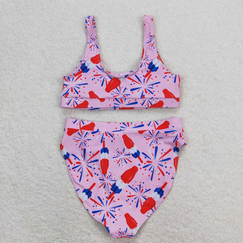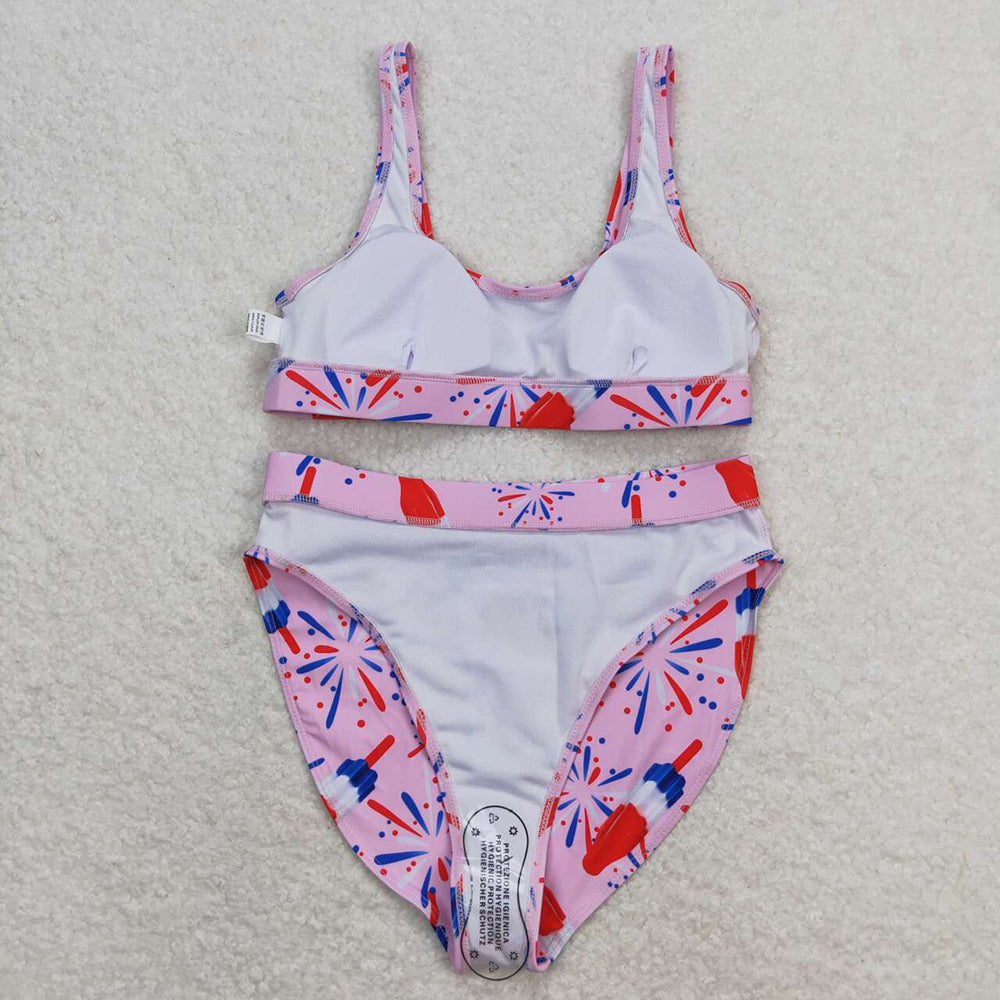 Adult Women Pink Popsicle 4th Of July Top Bottom Swimsuits Sets