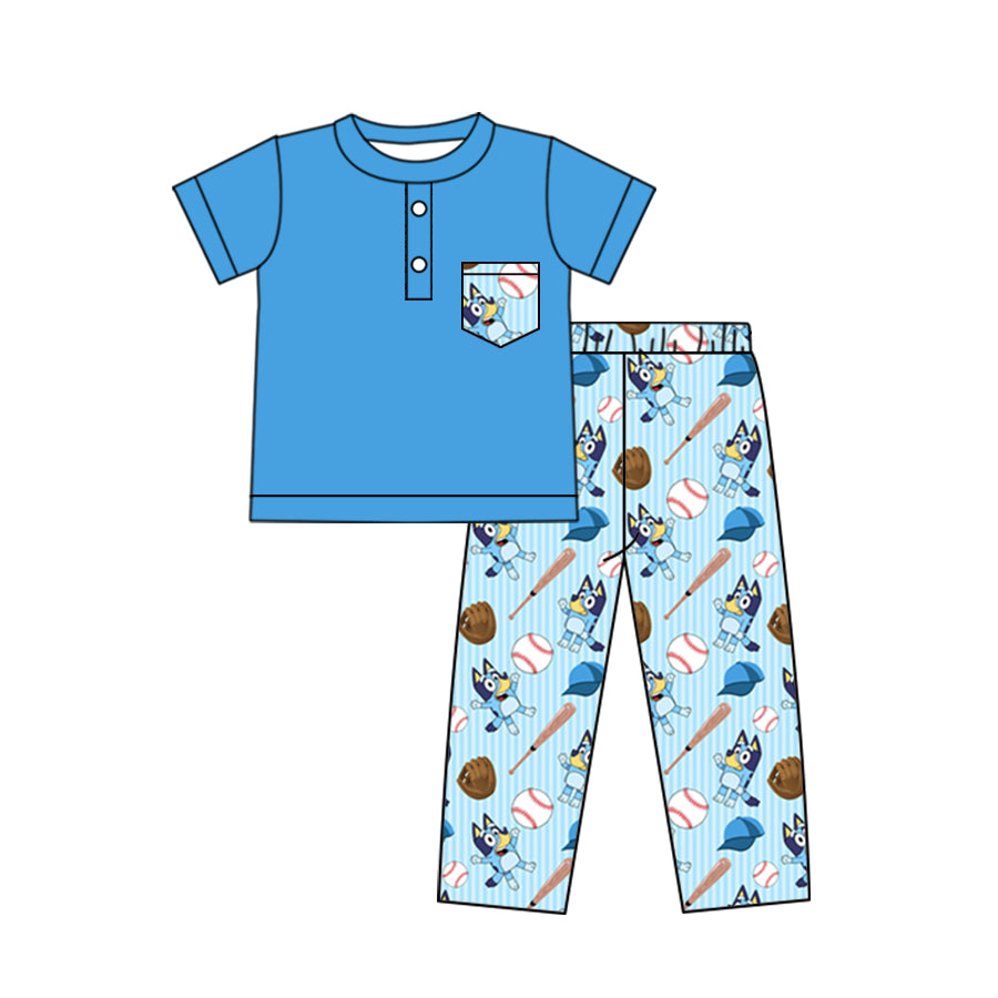 Baby Boys Blue Dogs Baseball Top Pants Pajamas Clothes Sets preorder(moq 5)