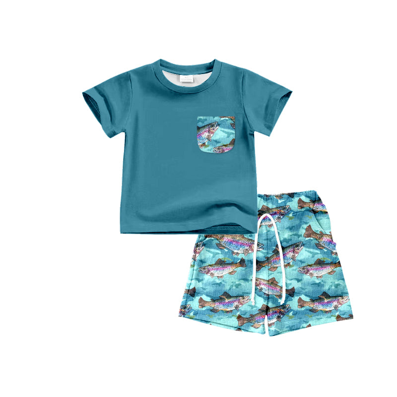 Baby Boys Blue Pocket Shirt Fishing Shorts Clothes Sets preorder (moq 5)