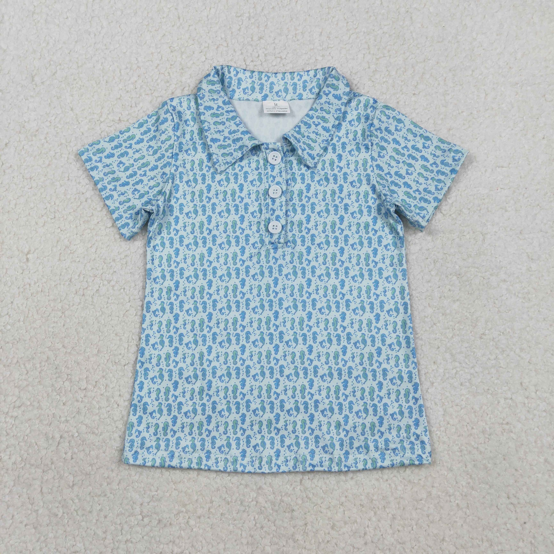 Baby Boys Blue Short Sleeve Seahorses Button Polo Shirts Tops