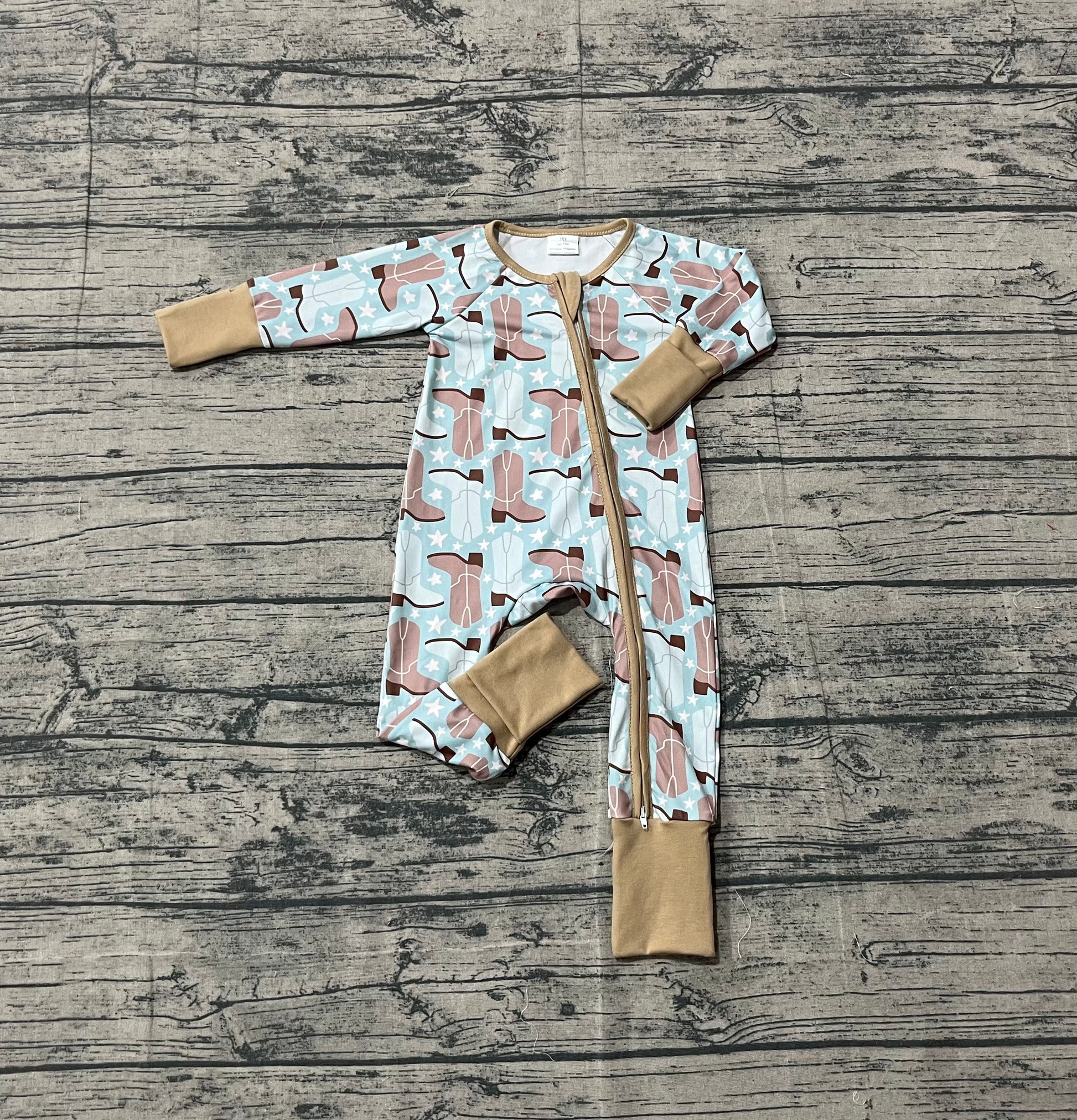 Baby Boys Boots Stars Plaid Western Two Way Zip Convertible Rompers