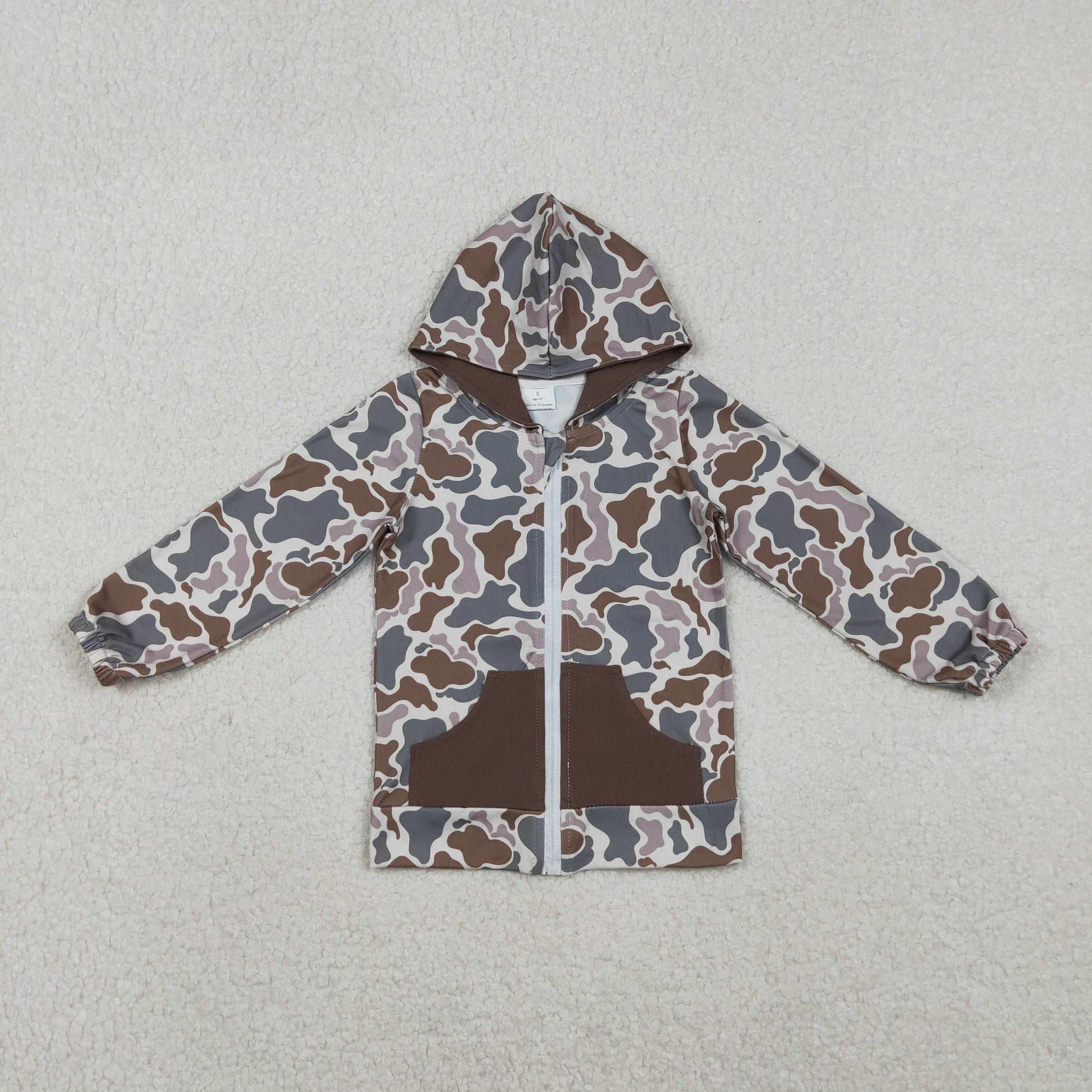 Baby Boys Brown Camo Pockets Zipper Southern Hoodies Jackets Top