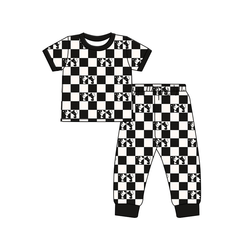 Baby Boys Cartoon Black Checkered Mouse Short Sleeve Shirt Pants Pajamas Clothing Sets Preorder(moq 5)