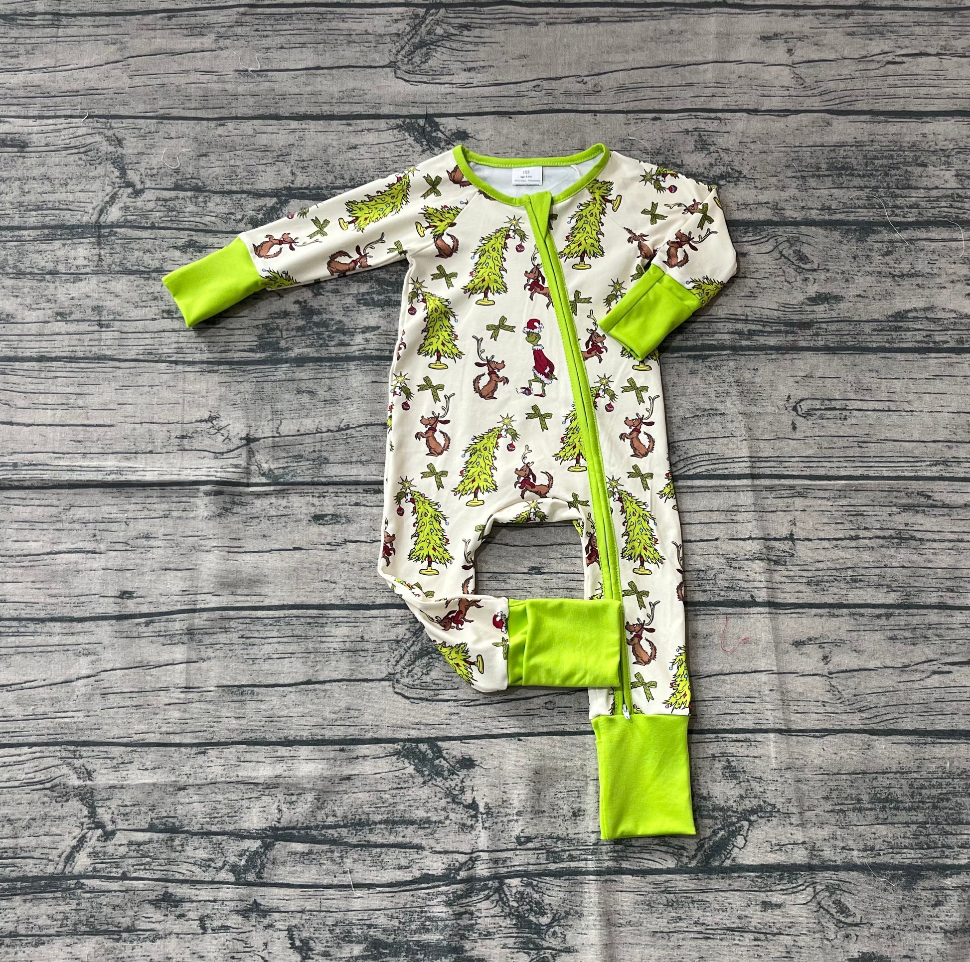 Baby Boys Christmas Trees Green Face Dogs Zipper Footie Rompers