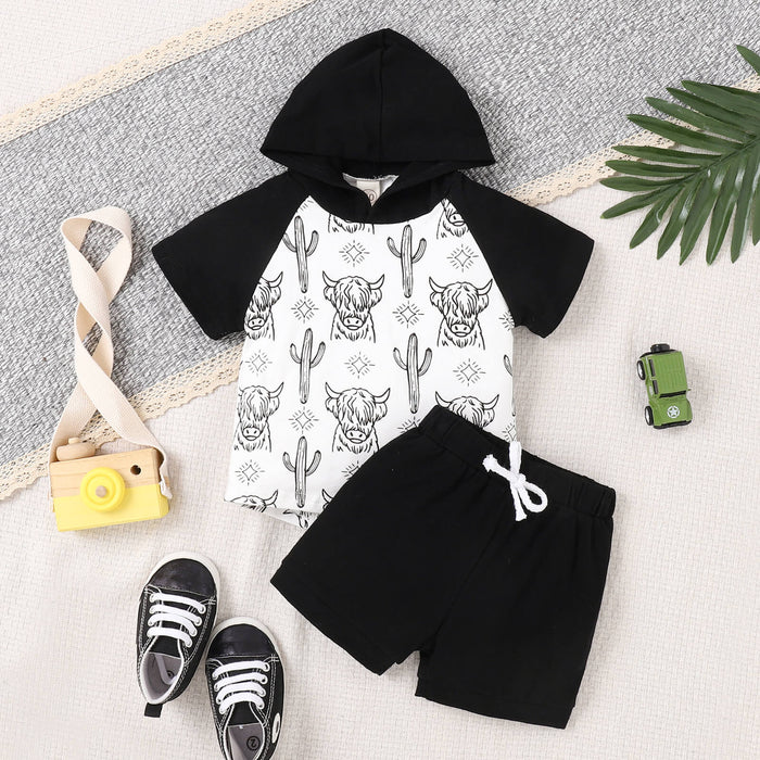 Baby Boys Cow Cactus Short Sleeve Hooded Top Shorts Clothes Sets preorder (moq 5)