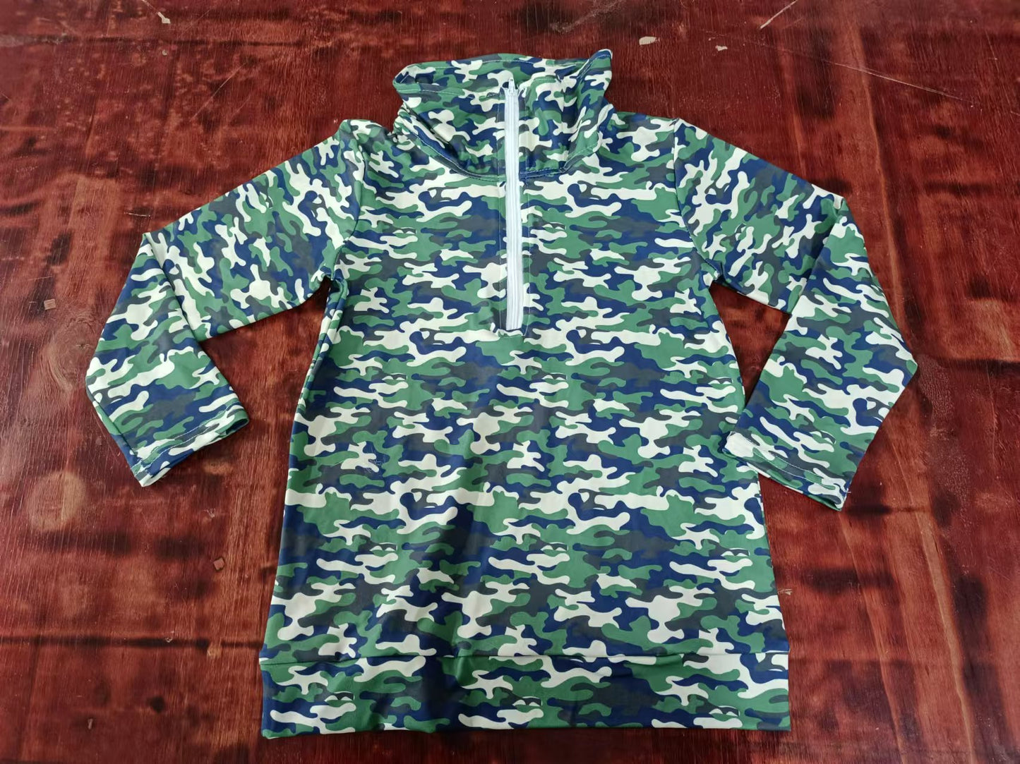 Baby Boys Green Camo Zip Pullovers Tops preorder(MOQ 5)