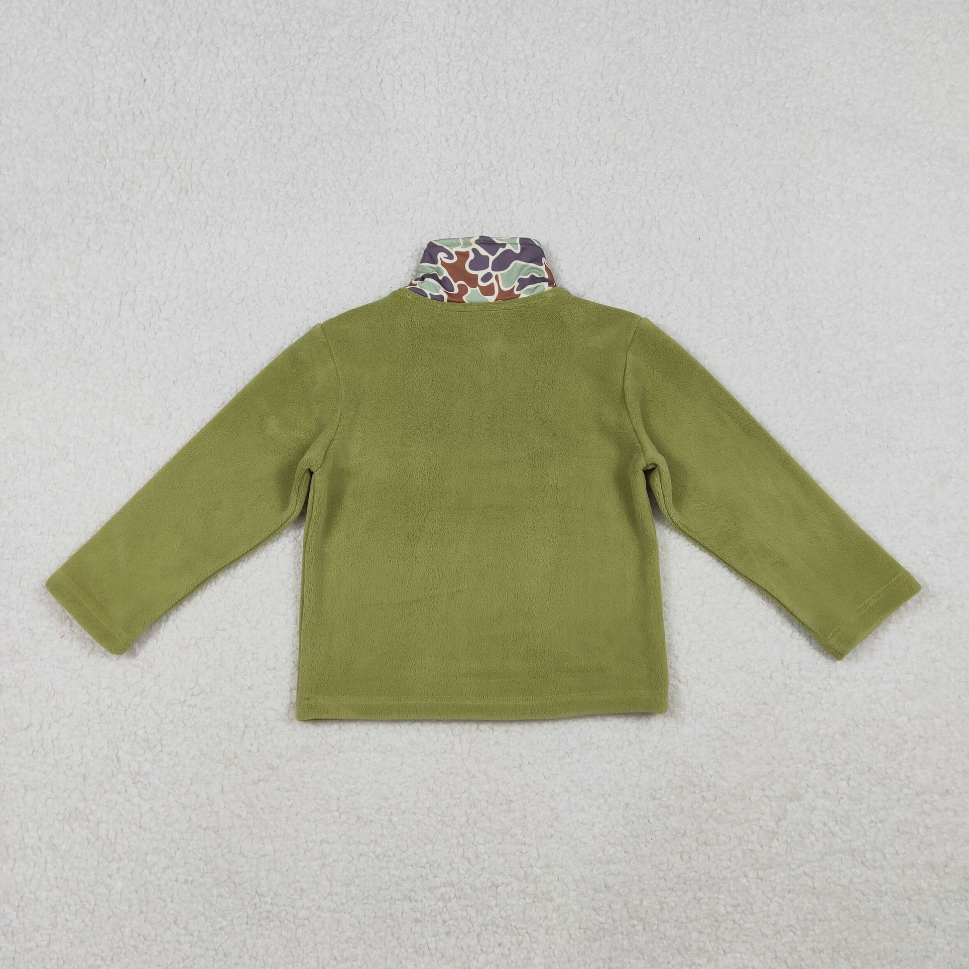 Baby Boys Green Camo Quatrefoil Zipper Pullover Sherpa Tops
