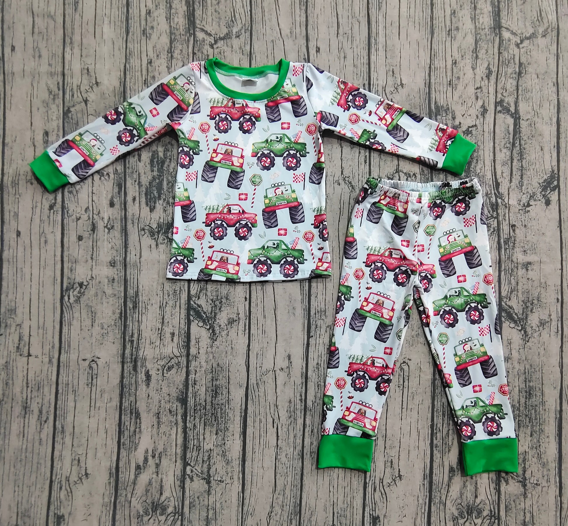 Baby Boys Long Sleeves Trucks Trees Flags Top Pant Pajamas Set
