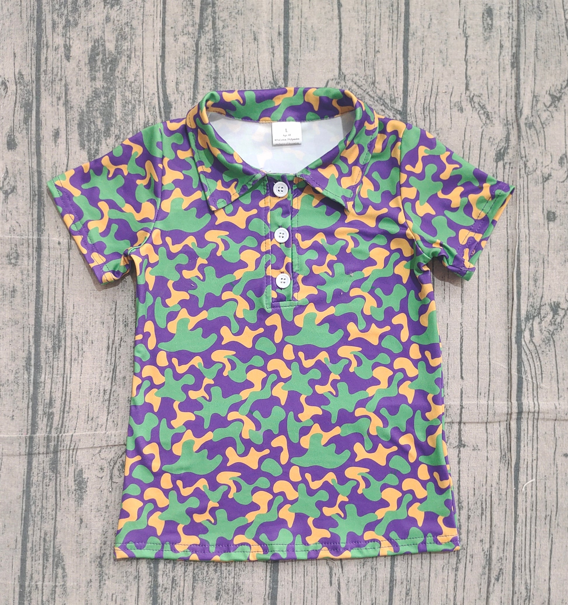Baby Boys Short Sleeve Mardigras Camo Button Polo Shirts Top