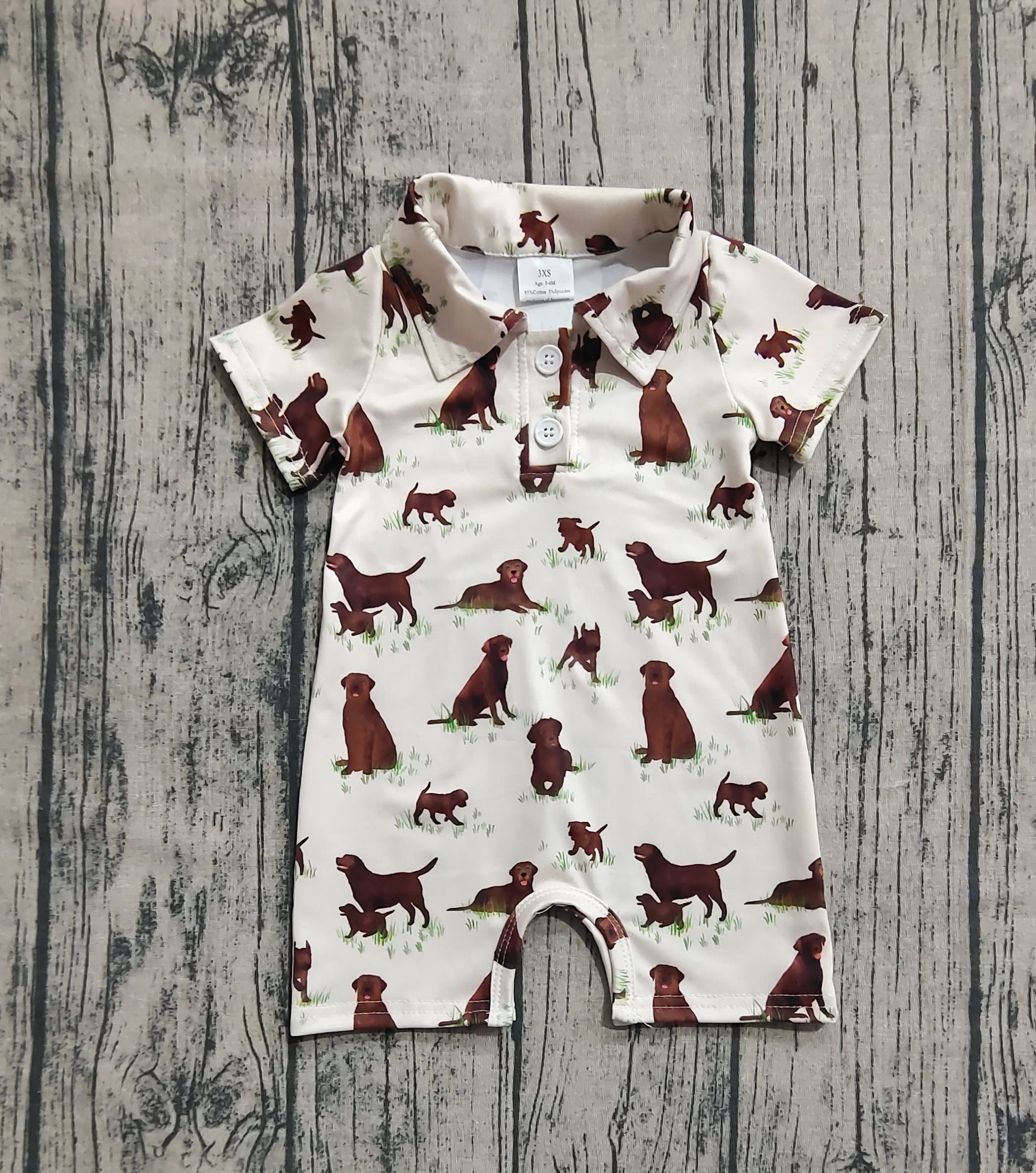 Baby Boys Short Sleeves Button Dogs Plaid Shorts Rompers