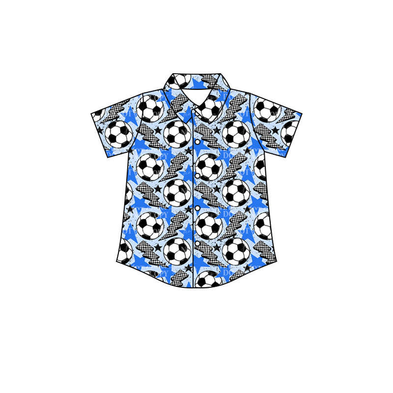 Baby Boys Soccer Blue Short Sleeve Buttons Tee Shirts Tops Preorder(moq 5)