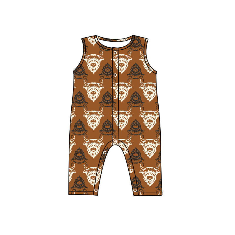Baby Boys Western Highland Cows Buttons Sleeveless Rompers preorder(moq 5)