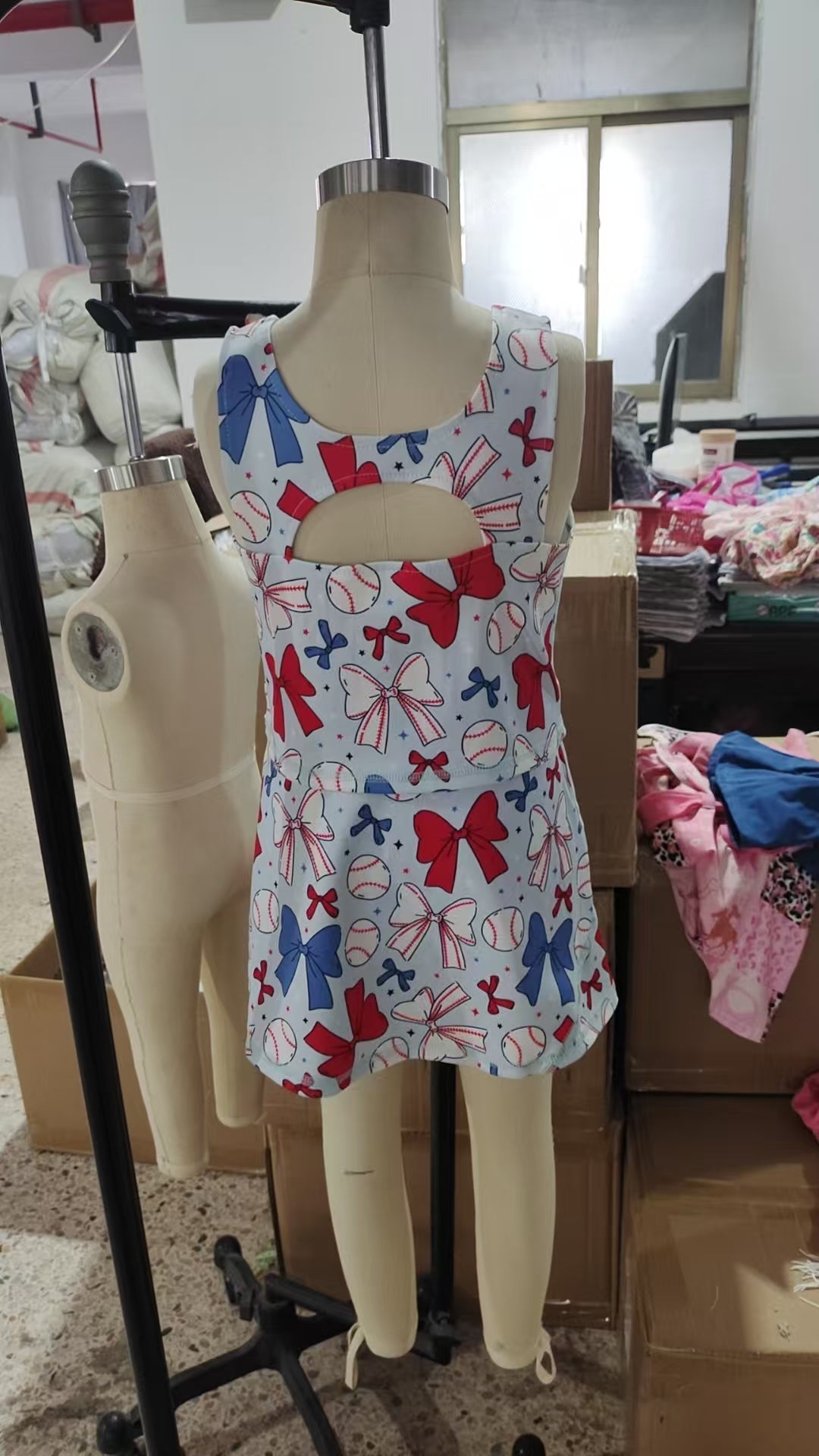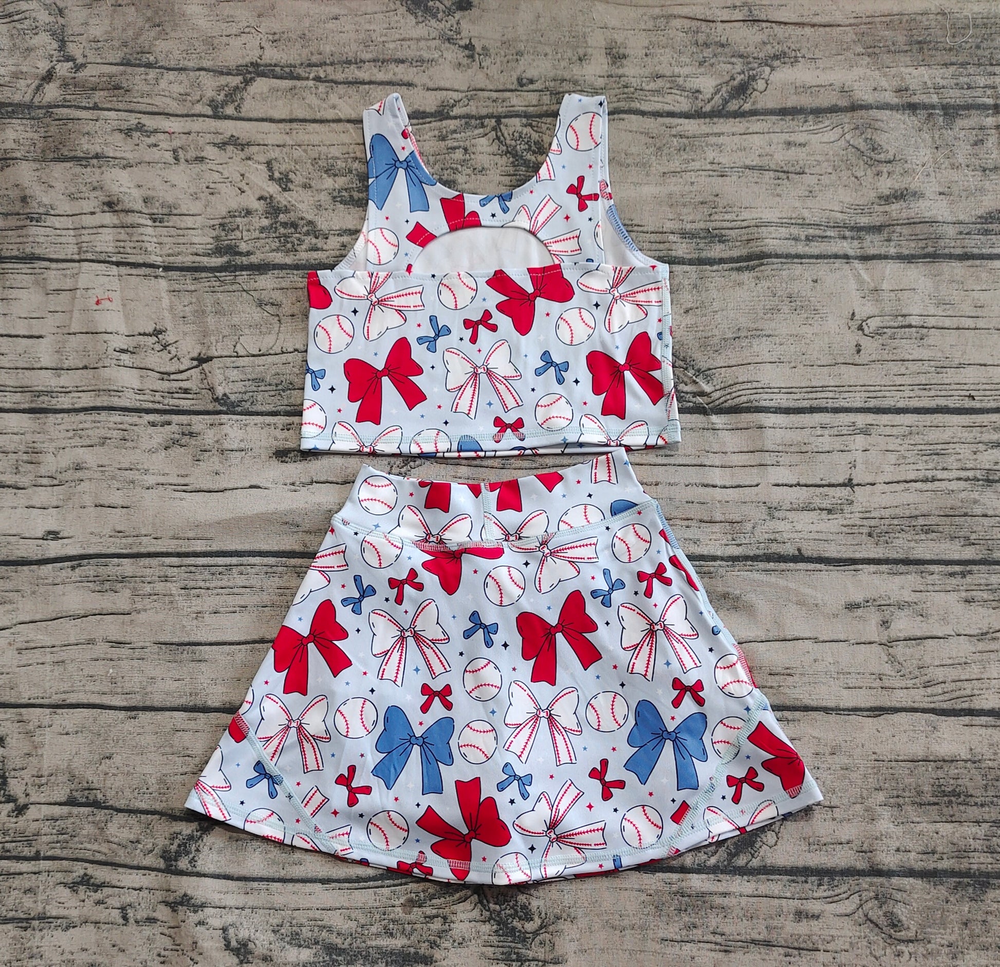 Baby Girls 4th Of July Bows Baseball Yoga Vest Skort Active Wear Sets