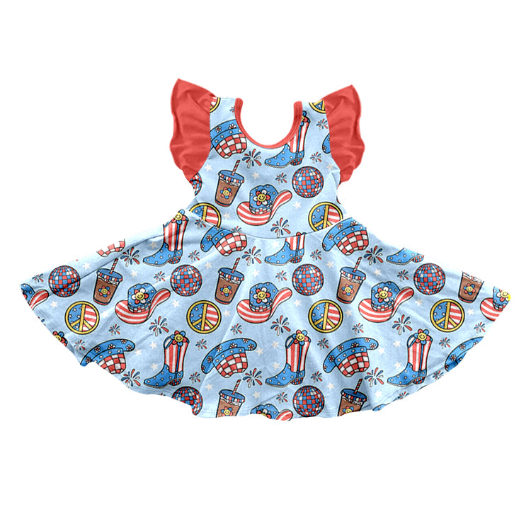 Baby Girls 4th Of July Western Boots Summer Flutter Sleeve Knee Length Dresses preorder(moq 5)