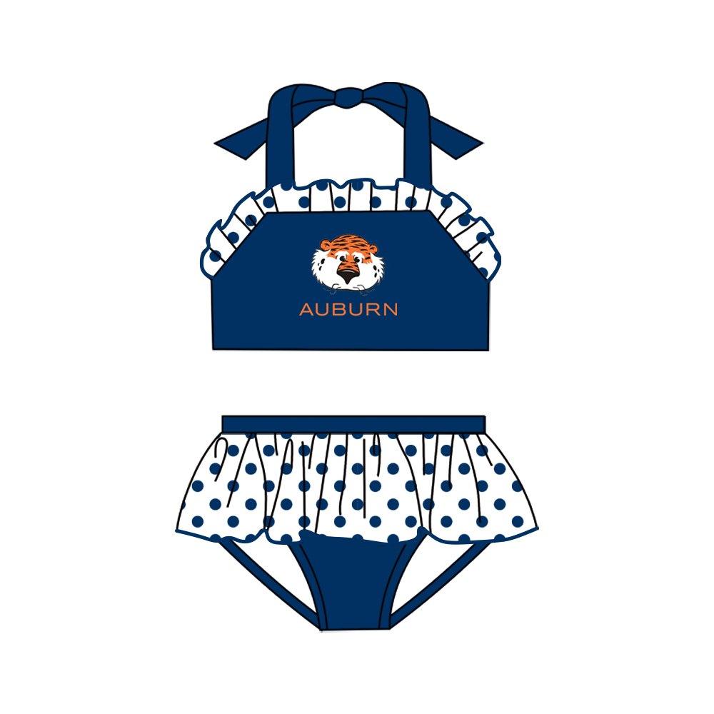 Baby Girls Auburn Tiger Team Ruffle Two Pieces Swimsuits preorder (moq 5)