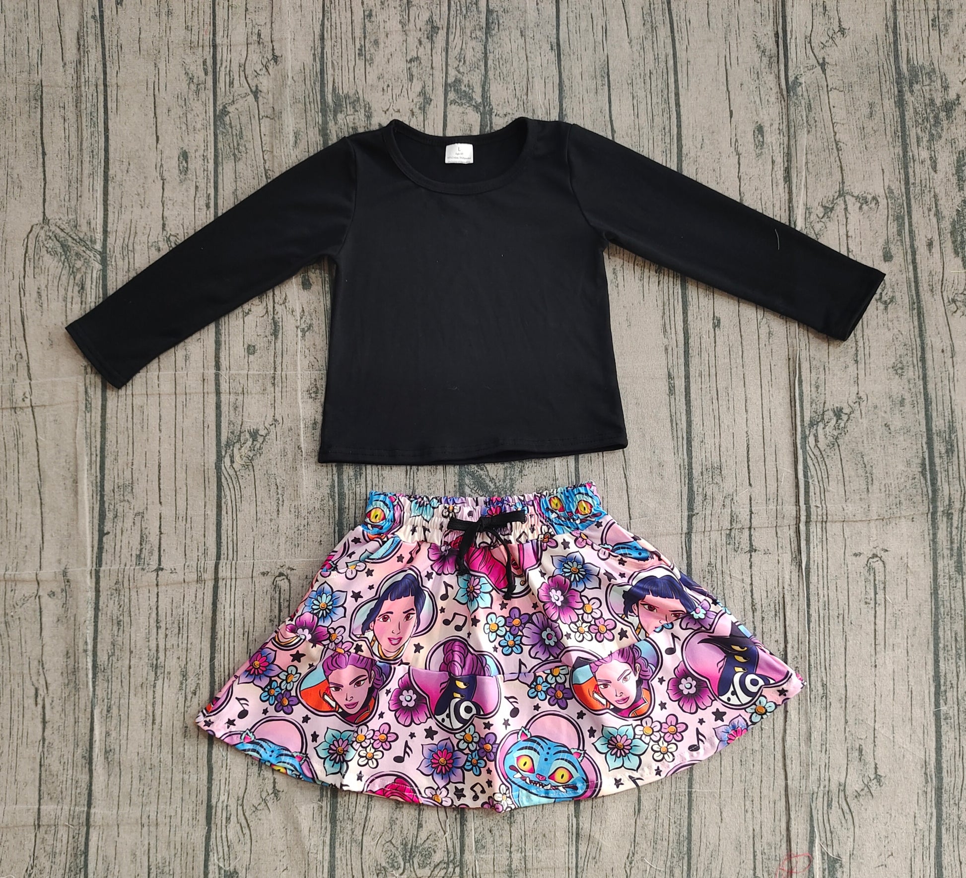 Baby Girls Black Shirt Top Demon Hunter Pockets Skirt Shorts Clothes Sets