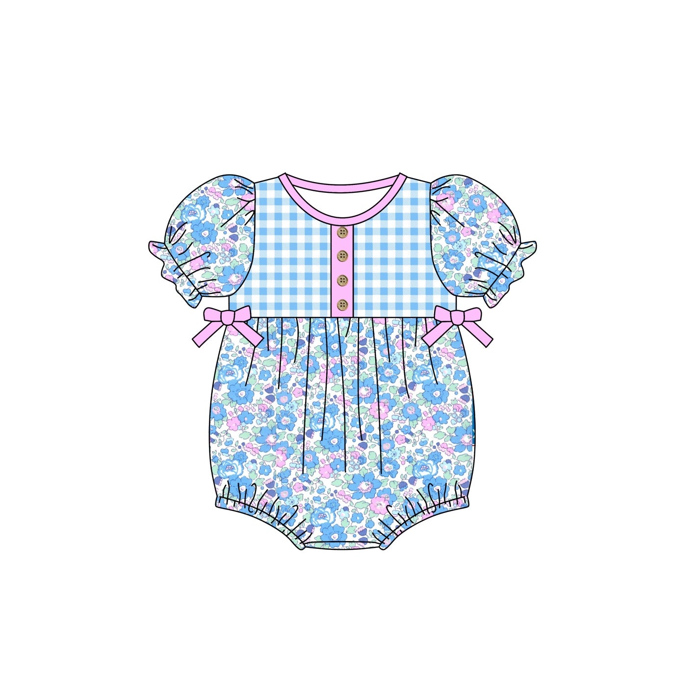 Baby Girls Blue Flowers Bows Rompers preorder(moq 5)