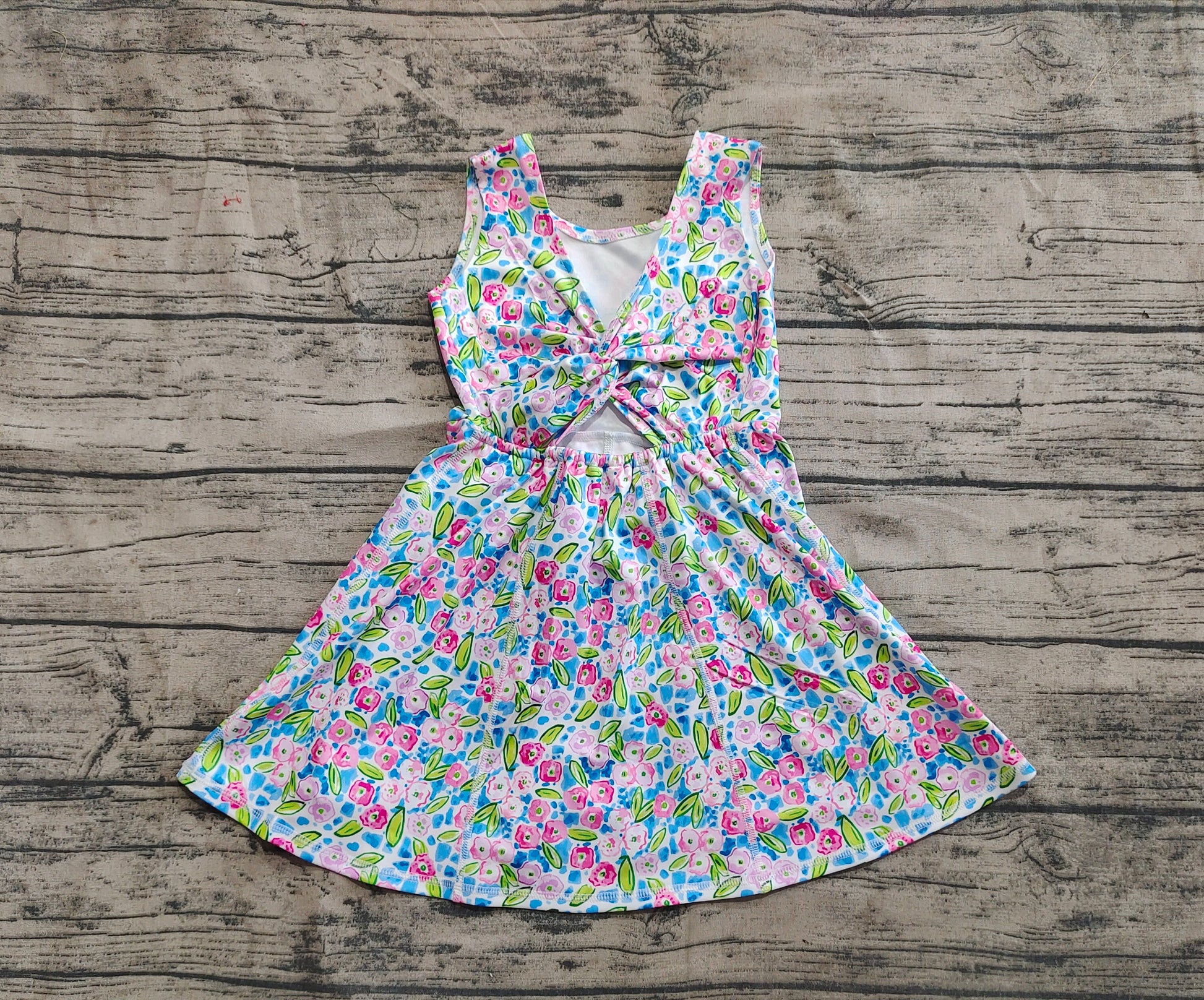 Baby Girls Blue Flowers Sleeveless Athletic Dresses