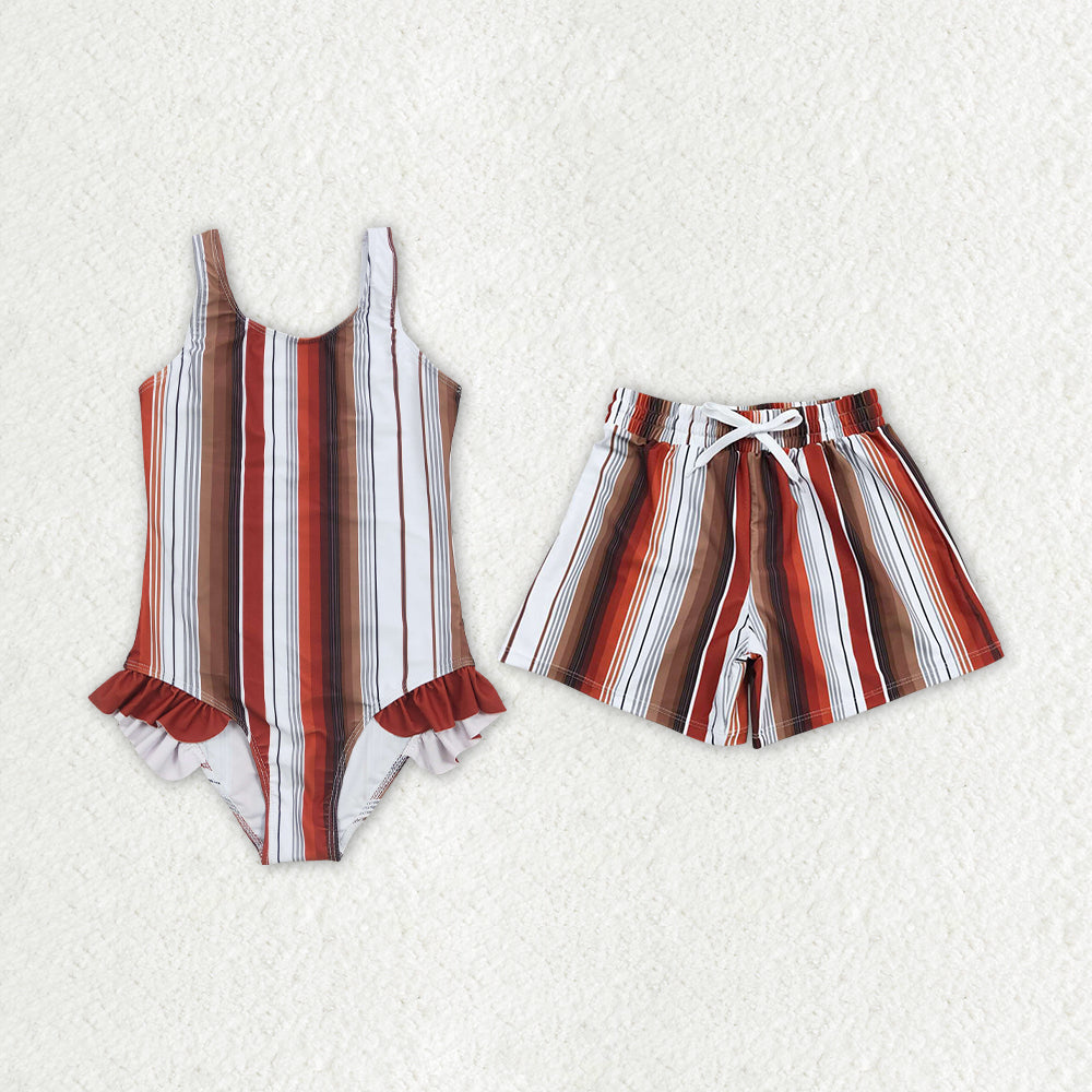Baby Girls Boys Brown Stripes Western Summer Trunk Swimsuits