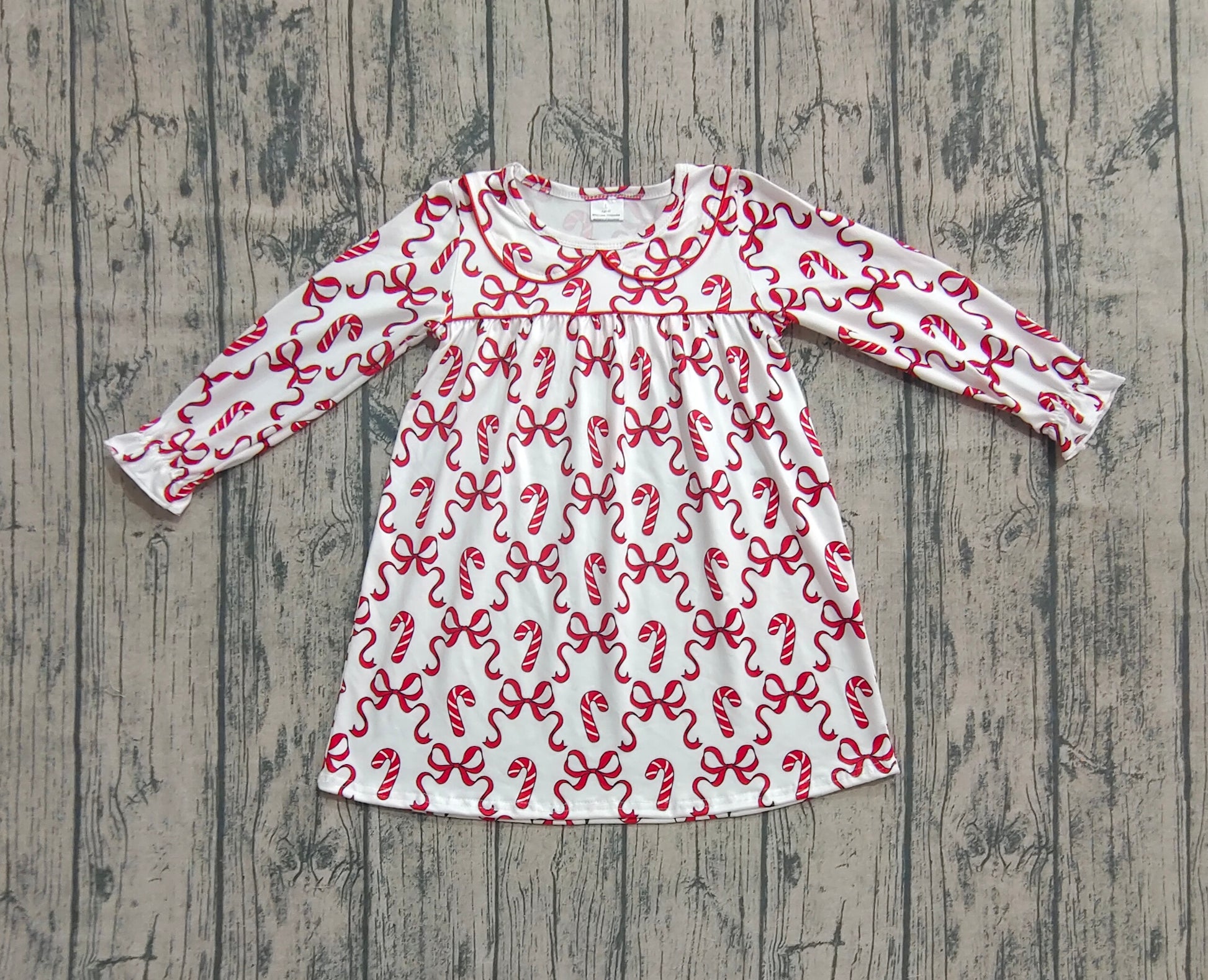 Baby Girls Christmas Red Bows Candy Cane Knee Length Dresses