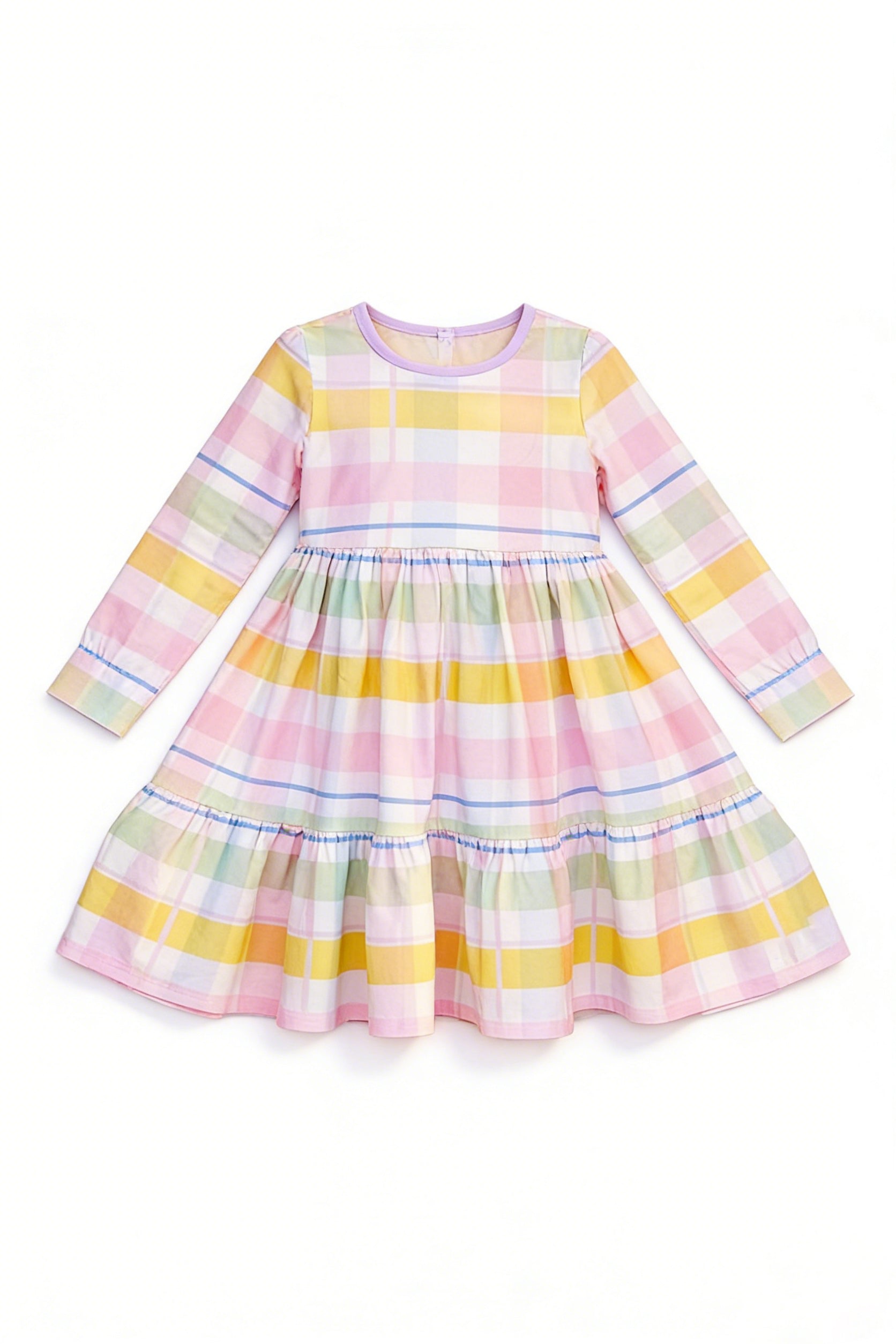 Baby Girls Colorful Checked Patchwork Knee Length Dresses Preorder