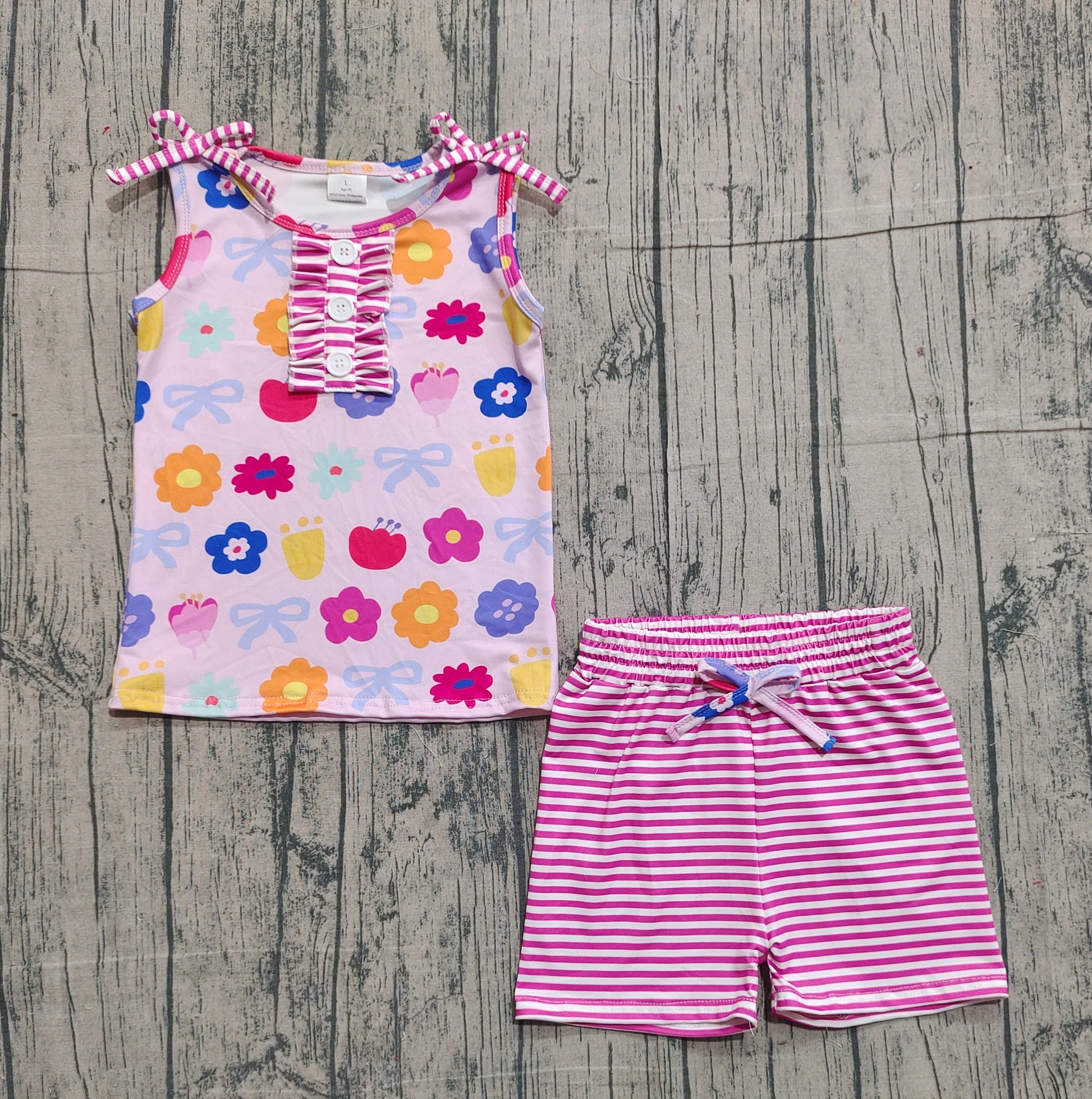 Baby Girls Colorful Flowers Button Top Stripe Shorts Clothes Sets