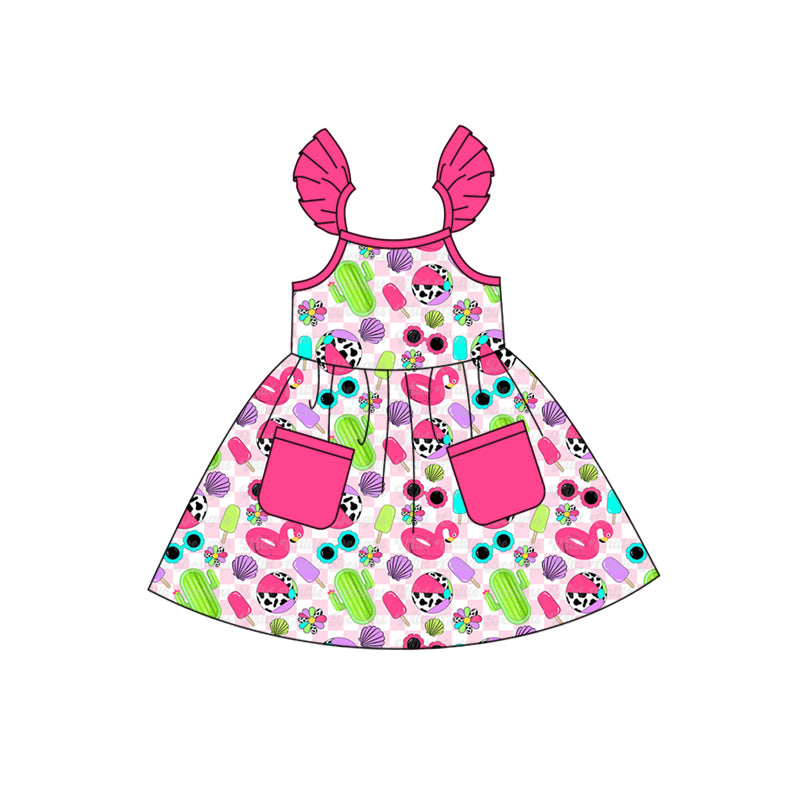 Baby Girls Cowgirl Summer Flutter Sleeve Pockets Knee Length Dresses preorder(moq 5)
