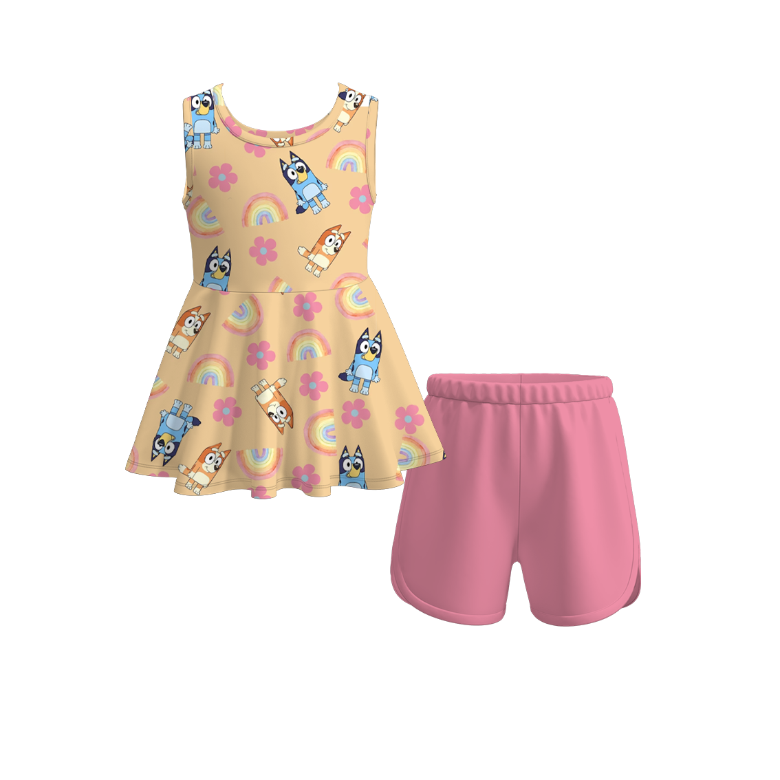 Baby Girls Dogs Rainbow Sleeveless Tunic Top Shorts Clothes Sets preorder (moq 5)