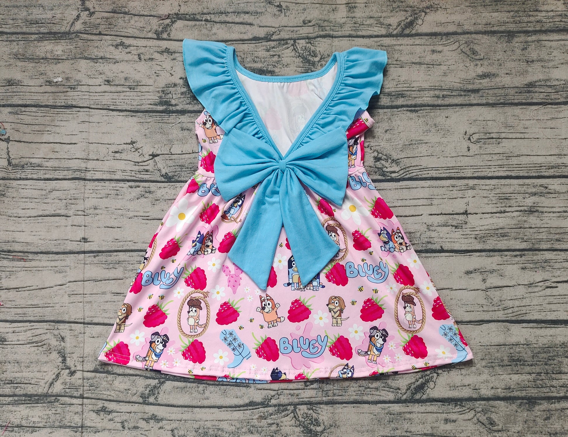 Baby Girls Dogs Strawberry Bows Knee Length Dresses