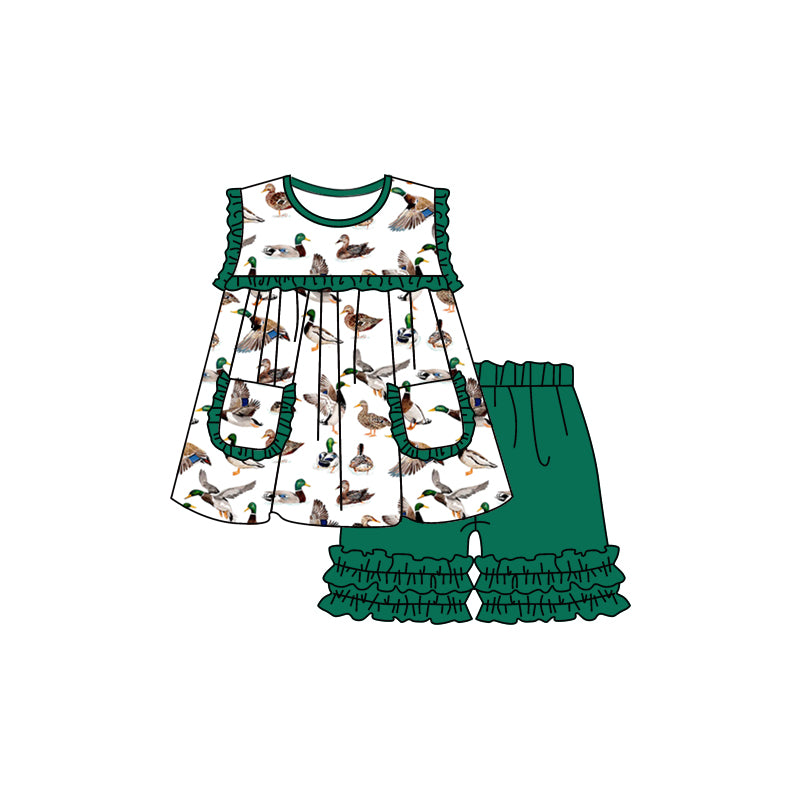 Baby Girls Ducks Pockets Tunic Top Ruffle Shorts Clothes Sets Preorder(moq 5)