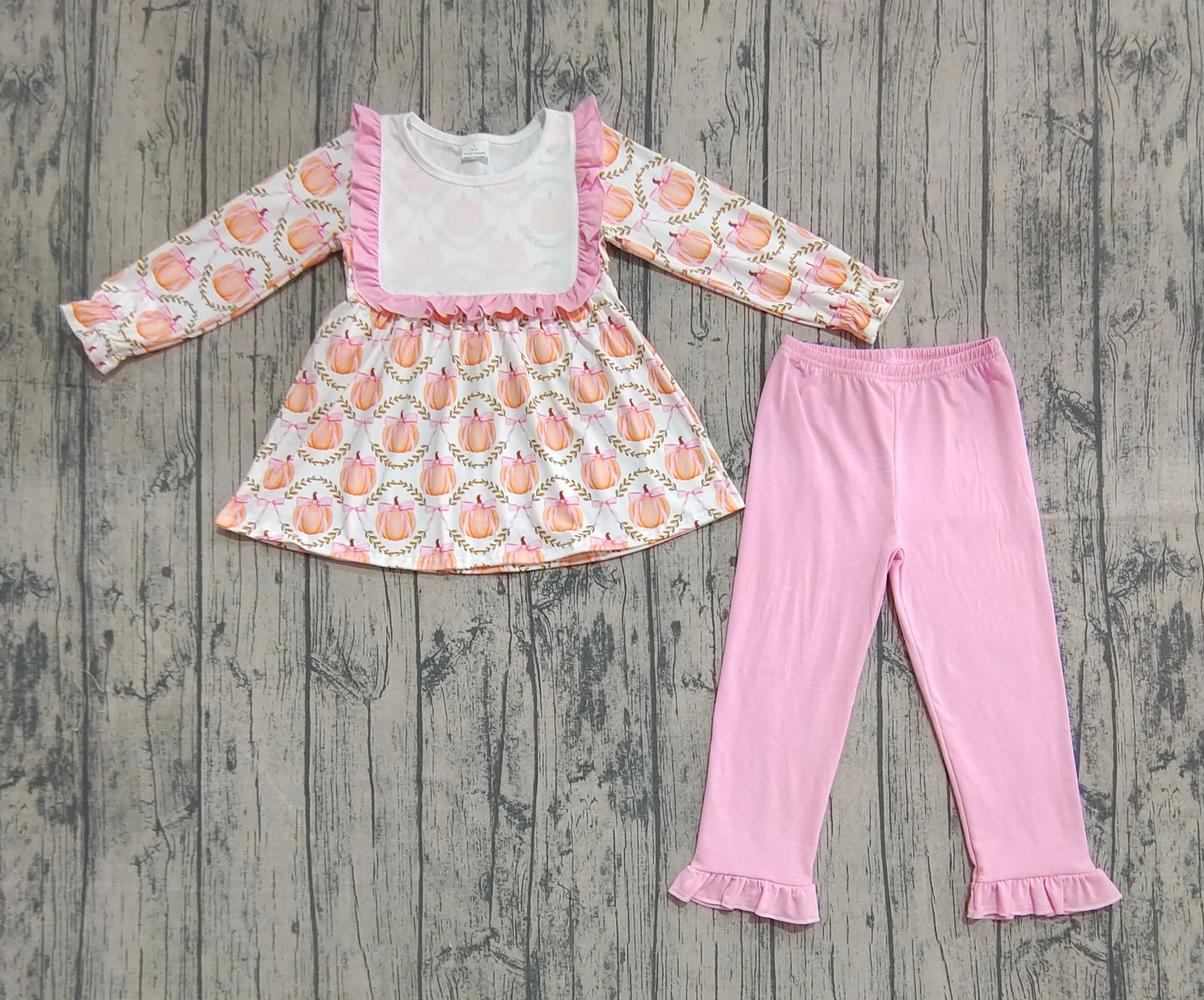 Baby Girls Fall Pumpkins Bows Plaid Tunic Flame Pants Sets