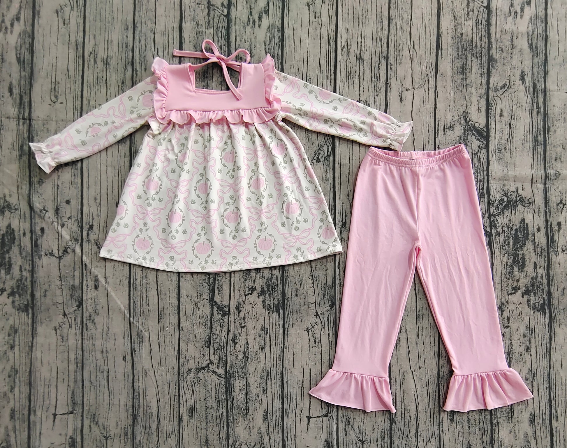 Baby Girls Fall Pumpkins Bows Plaid Tunic Pink Ruffle Pant Sets