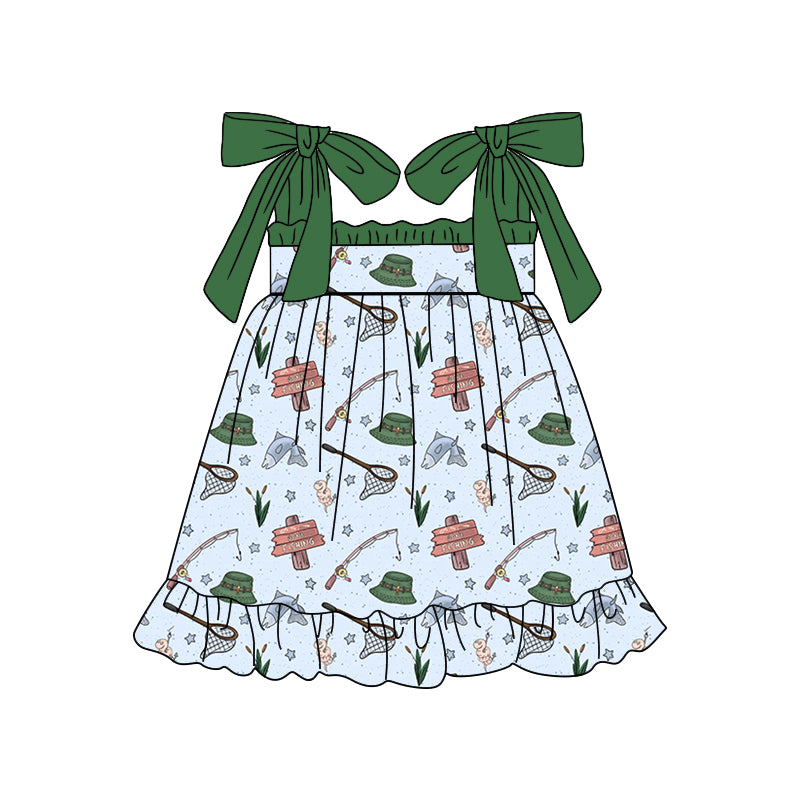 Baby Girls Fishing Straps Ruffle Knee Length Dresses preorder (moq 5)