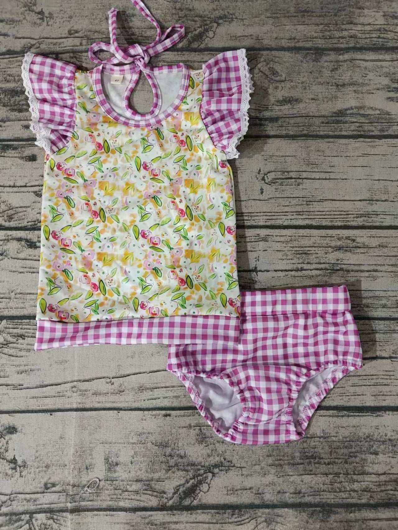 Baby Girls Flowers Ruffle Top Bummie Swimsuits Preorder(moq 5)