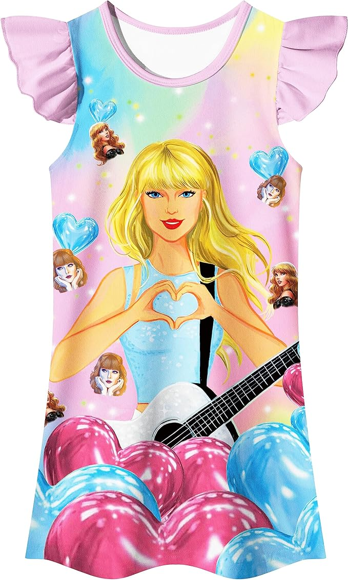 Baby Girls Flutter Sleeve Taylor Singer Guitar Knee Length Dresses preorder(moq 5)