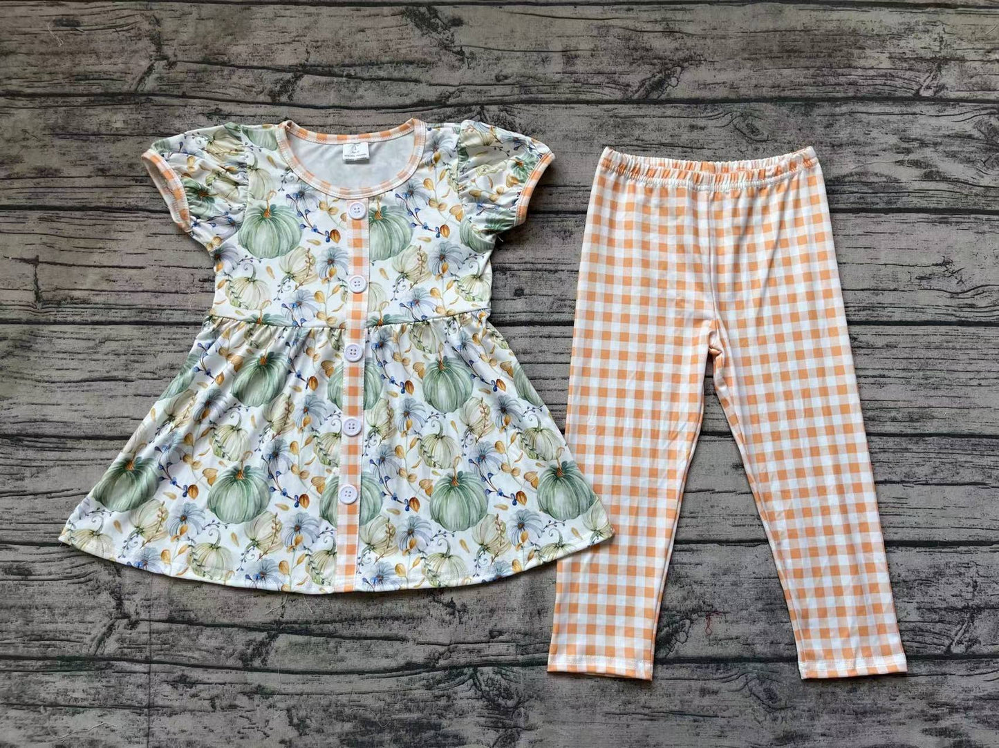 Baby Girls Green Pumpkins Tunic Flowers Legging Clothes Sets