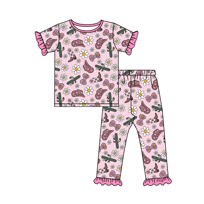 Baby Girls Hats Western Top Flowers Pants Pajamas Clothes Sets Preorder(moq 5)