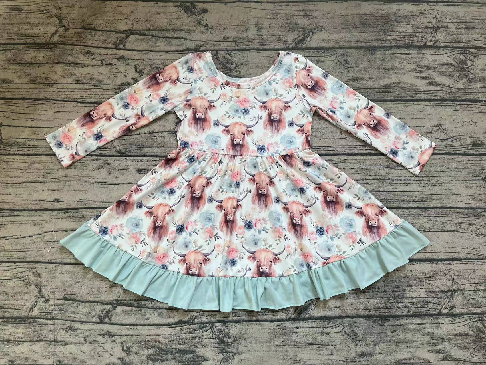 Baby Girls Highland Cows Top Western Knee Length Dresses