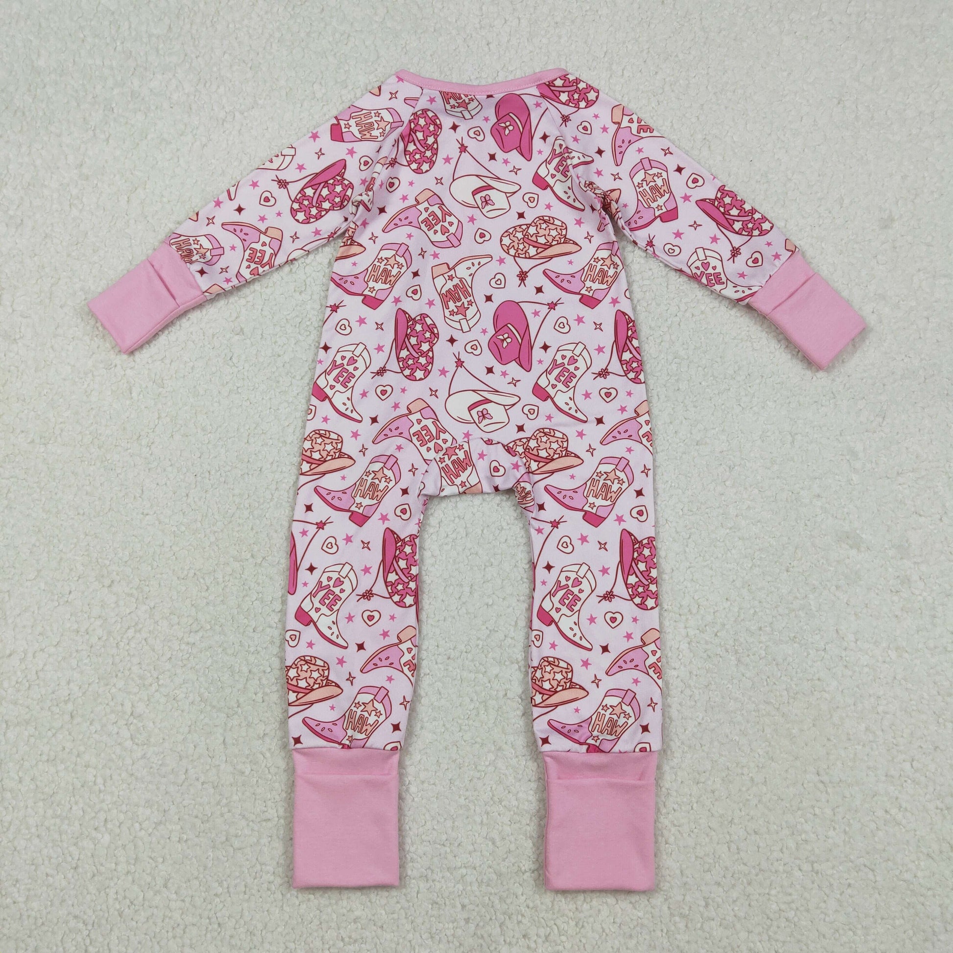 Baby Girls Howdy Boots Hats Western Two Way Zip Convertible Rompers