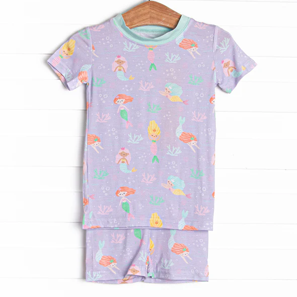 Baby Girls Lavender Mermaid Shirt Top Shorts Pajamas Clothes Sets preorder (moq 5)