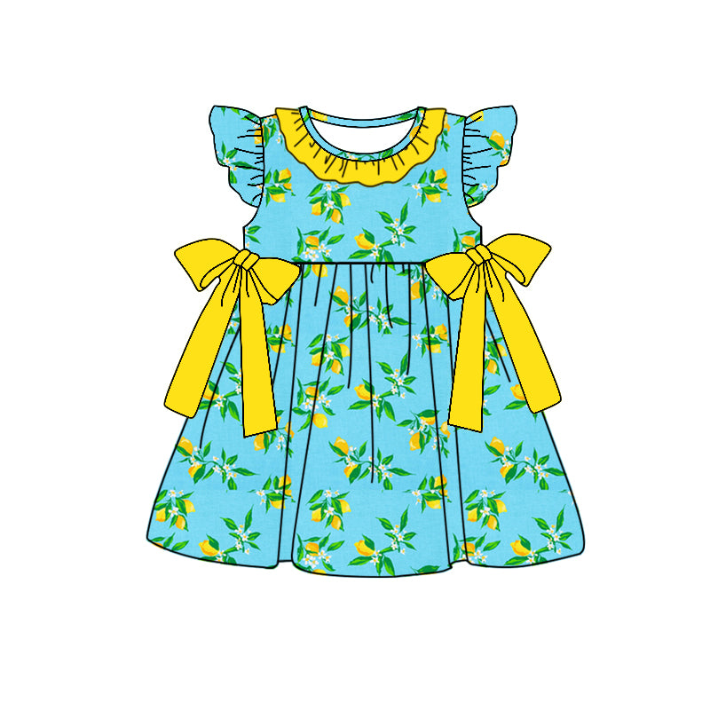 Baby Girls Lemon Bows Knee Length Dresses Preorder(moq 5)